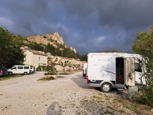 Vi havde bare brug for et sted at overnatte. Der var et fint sted nedenfor byen ved floder Verdouble. Her var god plads, samt fred og ro. Som altid gik vi en lille tur i nabolaget og fandt hurtigt ud af, at vi ville udforske byen lidt mere den kommende dag