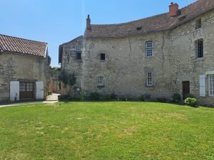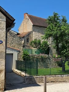 Charroux’s hjerte, Cour des Dames, en cirkulær plads med den majestætiske Maison Prévôtale, omgivet af smalle gader og bygninger, bevarede den middelalderlige bys sjæl. Jeg følte mig fortabt i tid, omgivet af bindingsværkshuse og antikke springvand, der fortalte historier om svundne dage.