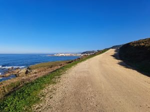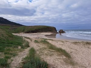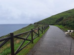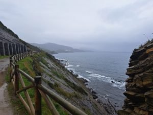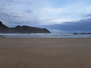 Vi tilbragte en nat i rolige omgivelser og benyttede lejligheden til at gå en tur ad en velanlagt sti, der ledte os ned til stranden ved Pobeña. På grund af regnvejret var det dejligt at have fast grund under fødderne og undgå alt for meget mudder omkring ‘Hundehuset’.