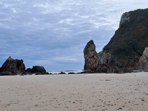 Vi fandt denne lille strand som er beliggende i Asturias-regionen i det nordlige Spanien. Denne strand er kendt for sin naturskønhed, sin rolige atmosfære og sit uberørte udseende. Stranden ligger i nærheden af landsbyen Tapia de Casariego og er omgivet af naturskønne klipper og bakker.