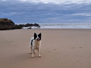Der kom kun ganske få andre mennesker, hovedsageligt andre med hunde, så jeg fik hilset på nogle andre hunde, hvilket altid er en fornøjelse. At iagttage havet og se forskellen mellem tidevandet er virkelig en fornøjelse her. Så vi gik flere gange ned til denne særlige strand.