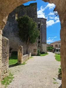 Porttårnet (Porte de Larressingle): Indgangen til landsbyen sker gennem et imponerende porttårn, som engang blev brugt til at kontrollere adgangen og beskytte byen mod angreb.